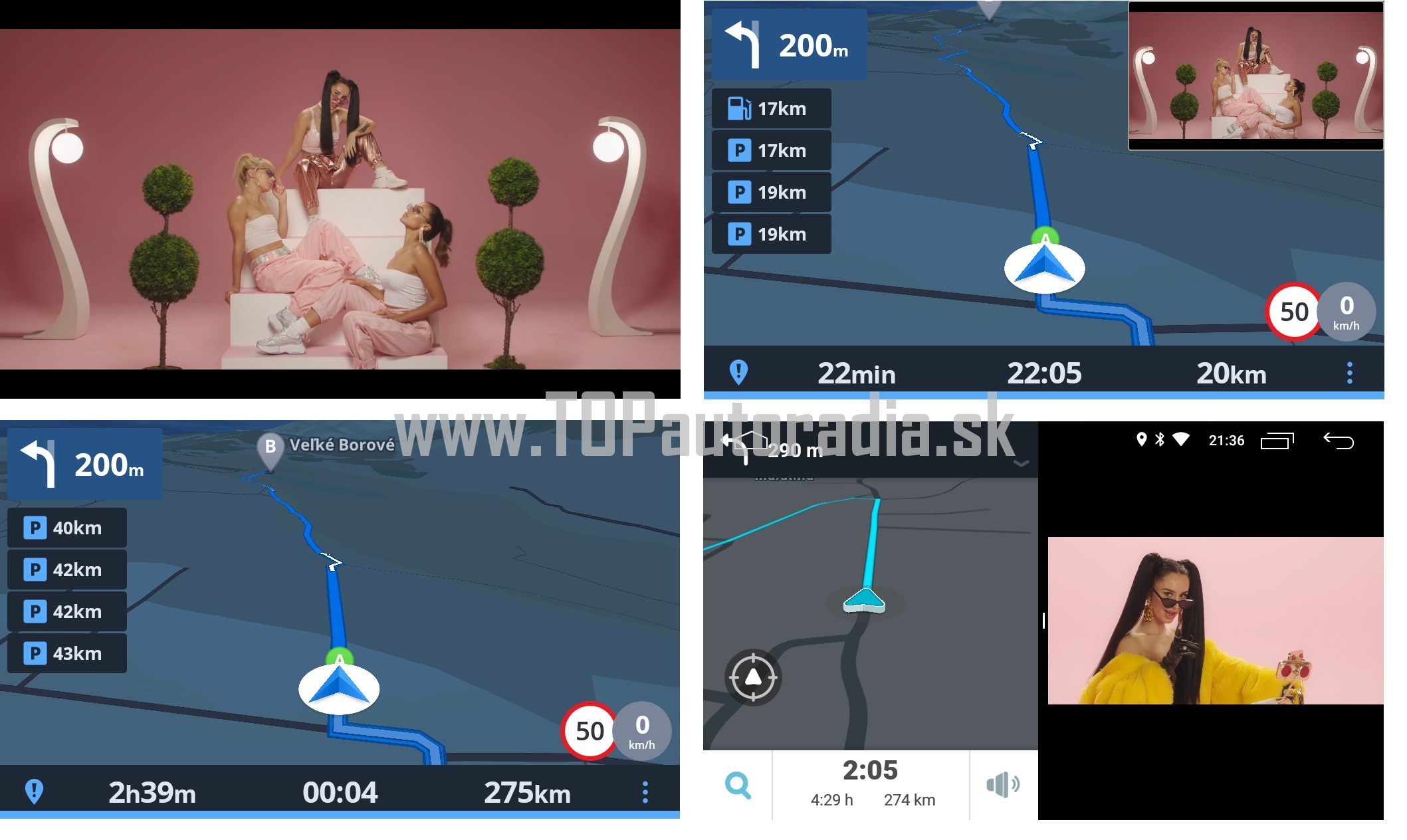 - PREMIOVÉ DUALZONE - na externý monitor môžete odoslať akúkoľvek aplikáciu (Video, Navigáciu, YouTube, Spotify, atď) a na rádiu máte spustenú tiež ľubovoľnú aplikáciu.