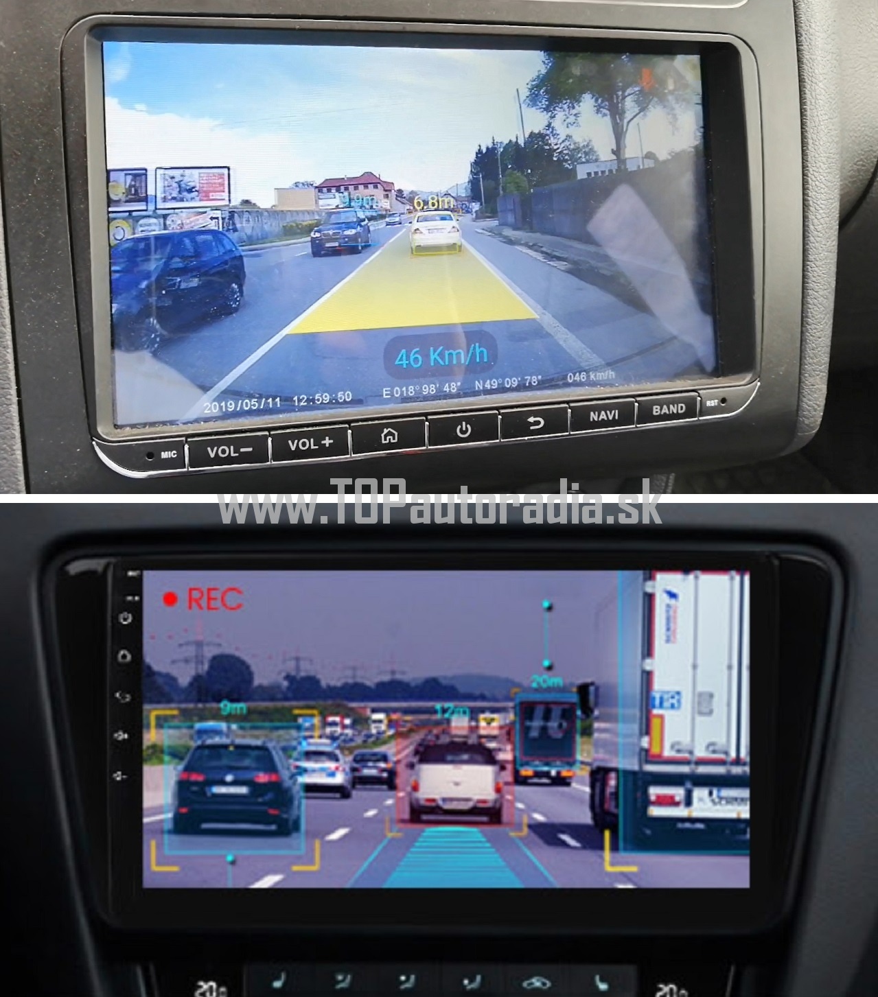 - prednú USB DVR KAMERU (čierna skrinka) s funkciou ADAS (snímanie čiar + ukazuje vzdialenosť auta pred vami). Nahraté video si prezeráte priamo v rádiu