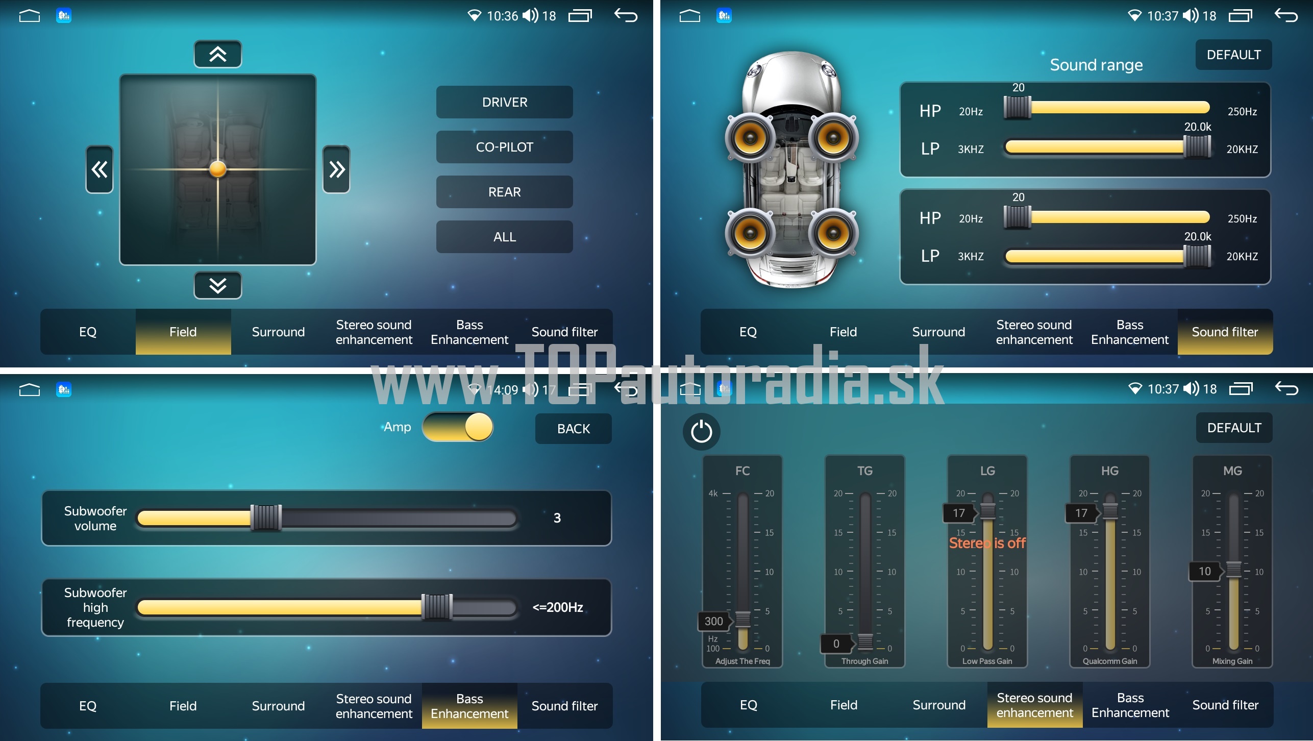 - DSP ZVUKOVÝ PROCESOR (kvalitný zvuk - 36 pásmový ekvalizér, SUPER BASS)